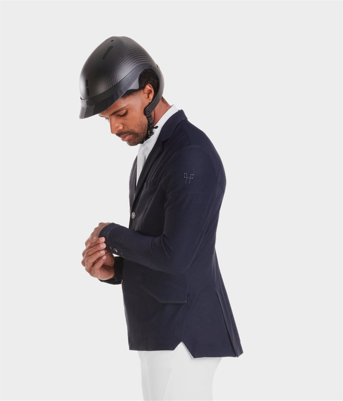Because our sport is an art of precision where every movement counts, the shape adapts to the rider’s posture on horseback. The cut-outs are ergonomically shaped and the sleeves are pre-shaped to ensure optimum ease of movement without getting in your way. The two-way stretch fabric is supple and highly breathable. Its honeycomb structure ensures effective heat dissipation during intense exertion in hot weather. In addition to its technical qualities, this jacket has all the aesthetic details you need for competition riding: a tailored collar, a discreet tone-on-tone logo and Fidlock® buttons for fast, secure fastening. Like the Aeromade jacket, the Aeromesh jacket is compatible with our line of airbags.