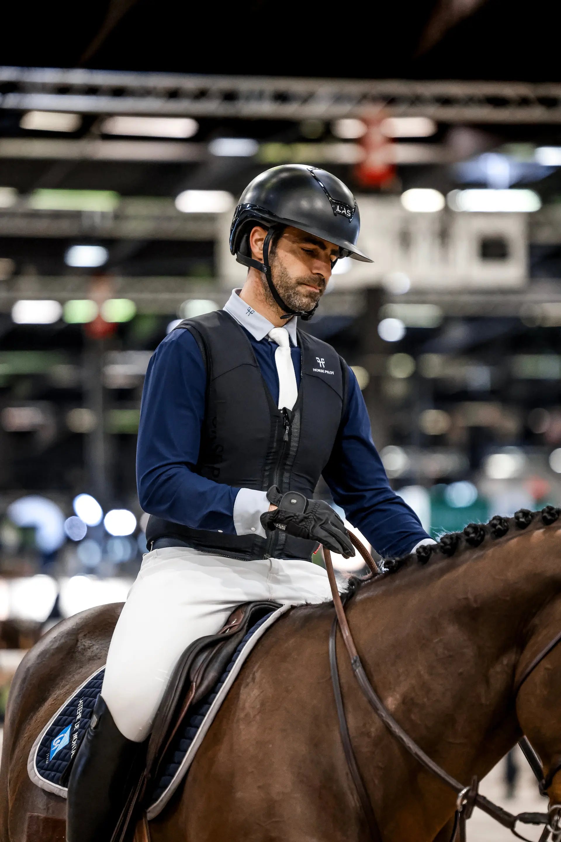 Designed for show jumping, dressage, eventing and trail riding, it performs particularly well during high-speed falls and under difficult conditions. If a fall occurs, the airbag inflates very quickly, guaranteeing maximum safety. The E-Twist'Air Airbag is pressurised and operational in less than 60 milliseconds, well before the initial impact (25 ms detection time + 30 ms inflation time).